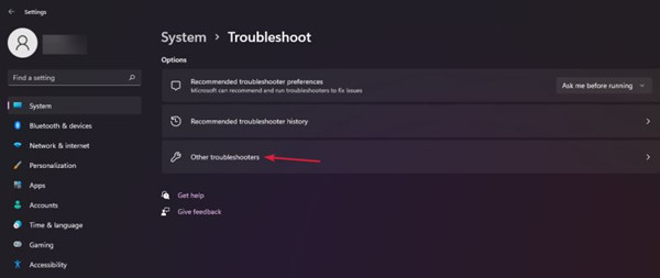 选择其他疑难解答。