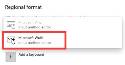 6、最后在输入法列表中选择“微软五笔”就可以完成五笔输入法的添加了。