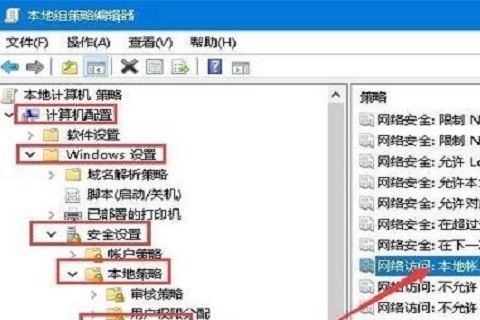 5、进入本地组策略编辑器,依次点击“计算机配置-windows设置-安全设置-本地策略-安全选项”;