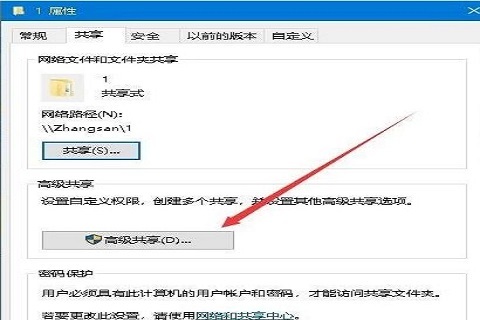 7、右键点击共享文件夹,属性栏点击“共享”,选择“高级共享”;