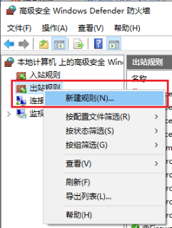 3、右击出站规则,选择新建规则。