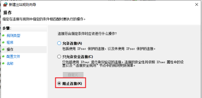 6、选中阻止连接并点击下一步。