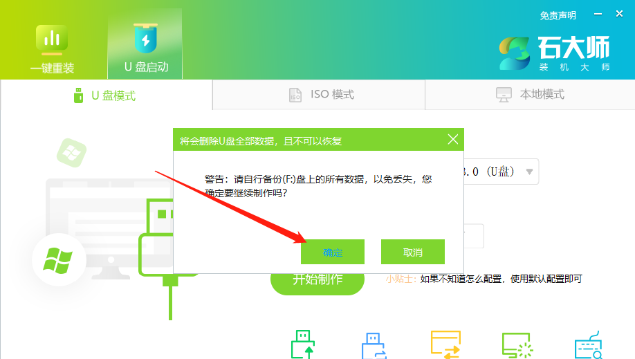 制作U盘启动盘时,软件会提醒用户备份U盘中的数据,防止数据丢失造成损失。