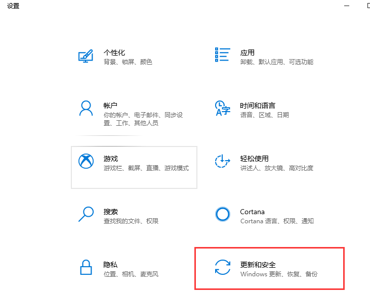 点击设置最下方的更新和安全