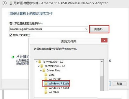 3、选择“浏览计算机以查找驱动程序软件”,点击“浏览”,找到驱动程序所在的文件夹后,点击“确定”,再点击“下一步”;