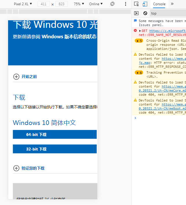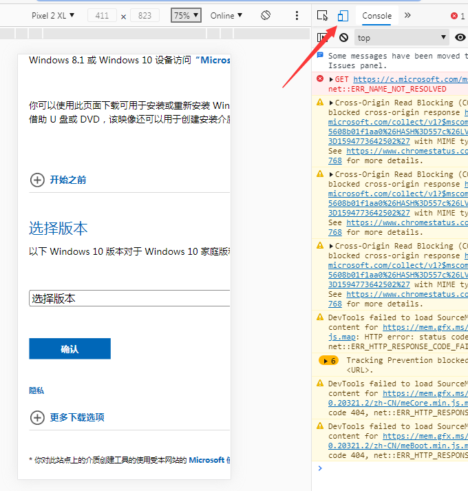 2、直接按键盘上的 F12,然后点击手机图标,把当前浏览的页面切换为手机模式。再按 F5 刷新页面,这个时候您就可以看到有下载镜像的选项了。
