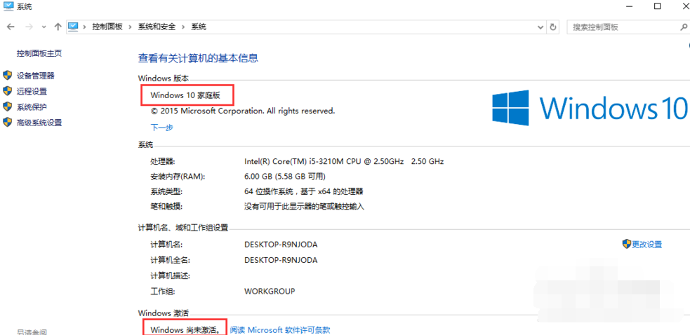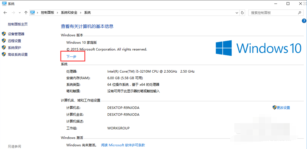 6、进入控制面板,可以看到,已经是win10专业版了,并且从原先的未激活到激活状态。