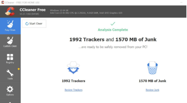 CCleaner将扫描系统中的跟踪器和垃圾文件。