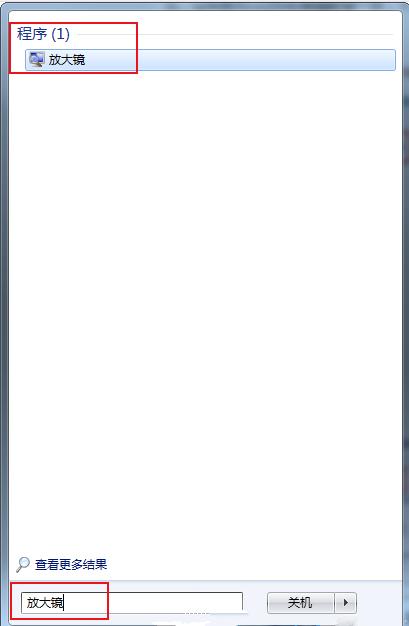 第一步:在左下方的“开始菜单”里的搜索框中输入“放大镜”,回车确定;