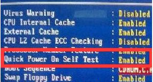 开机的时候,按下delet键进入bios,找到“Quick Power On Self Test”,将“Enabled”改成“Disabled”就行了。
