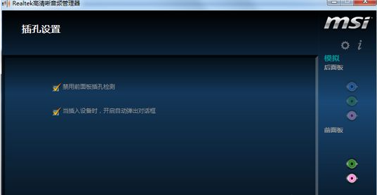2、进入Realtek高清晰音频管理器界面点击插孔设置。
