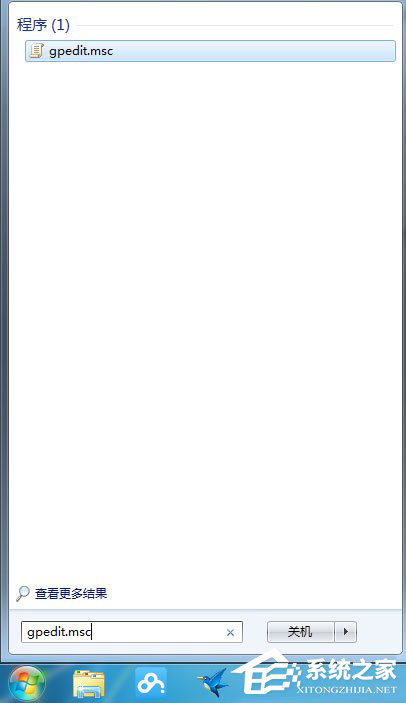 1、打开开始菜单,在搜索框里面搜索“gpedit.msc”;