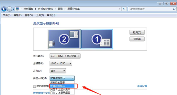 Win7电脑一台主机连接两个显示器怎么操作?