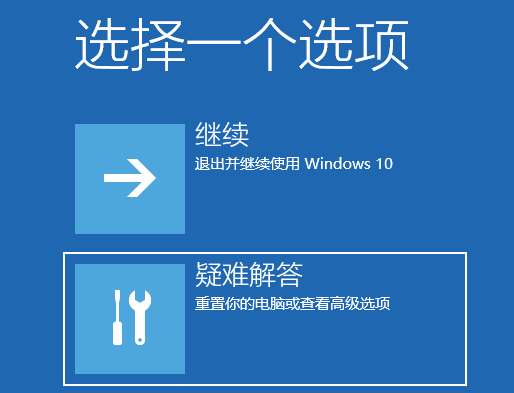 3、重启后自动进入菜单,这时我们选择疑难解答。