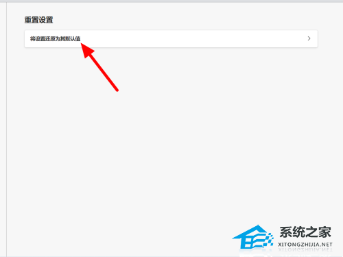 在重置设置界面,点击将设置还原为其默认值。