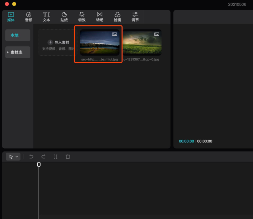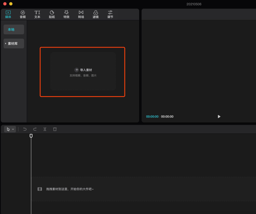 2、点击想要导入视频素材,添加进去要剪辑的视频文件。