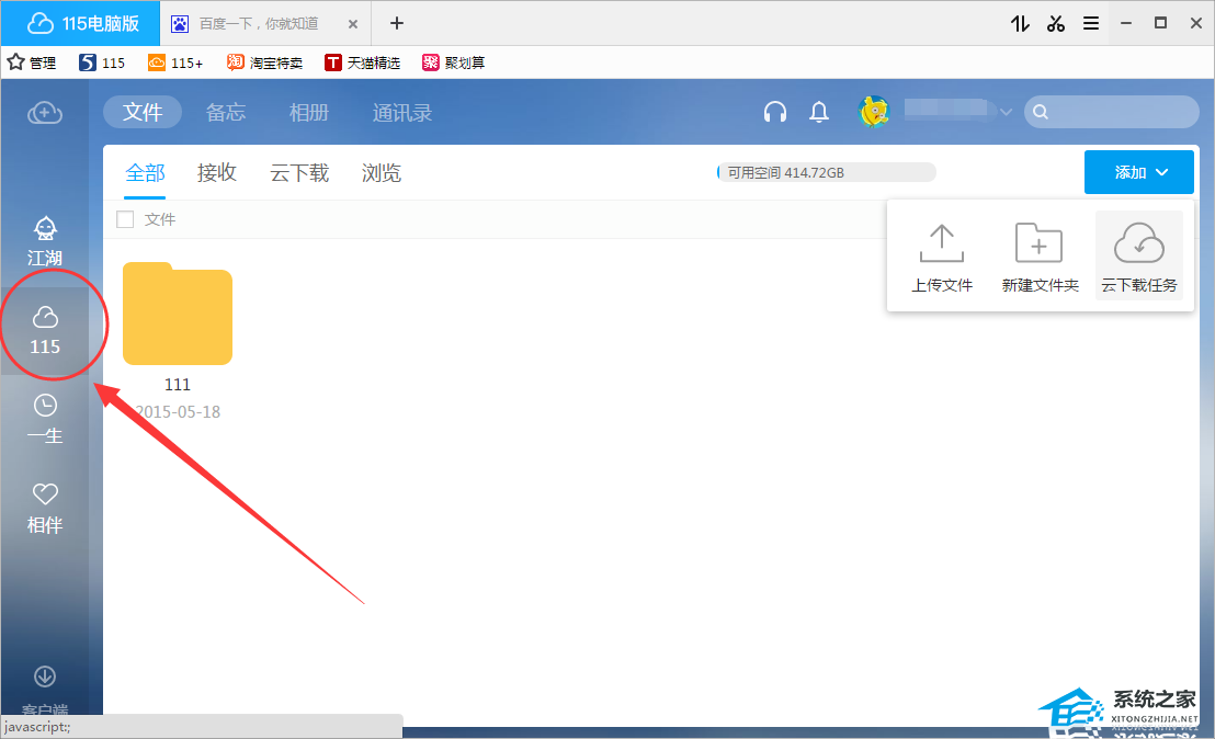 3、接着在"115 电脑版"的界面点击下图位置的" 115 "。