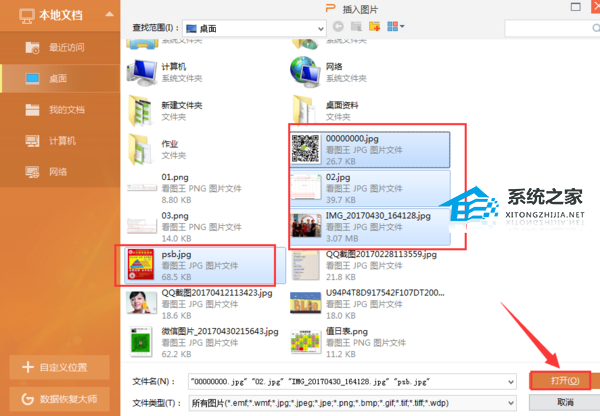 按住Ctrl+鼠标左键点击,选中多张图片,点击打开。