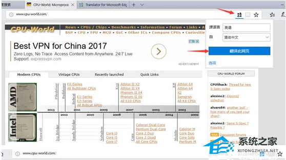 5、此时Edge浏览器右上角会多出翻译的按钮,打开外文网站后,点击这个按钮即可进行网页上的语言翻译。