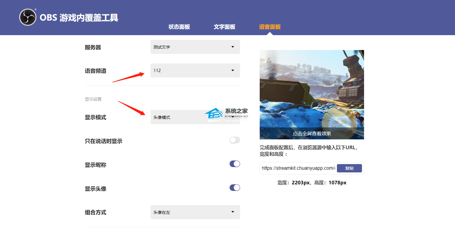 2、选择你需要展示的语音频道并显示模式。