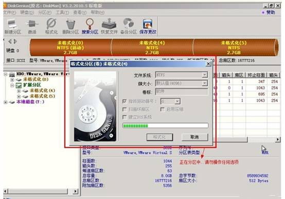 第二步:选择所需要分区的硬盘,硬盘容量大小,以免误分其它硬盘;