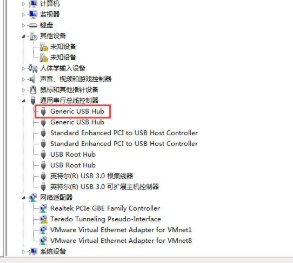 2、待进入设备管理器之后,在设备管理器里面找到“通用串行总线控制器”,点击前面的倒三角符号,打开里面支选项,双击任意一个“USB Root Hub”,即可进入“USB Root Hub属性”页面;