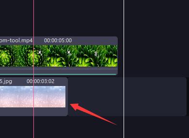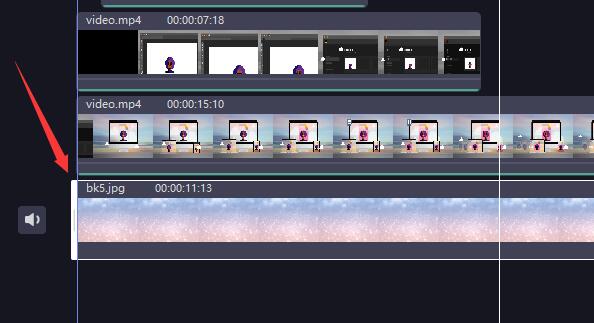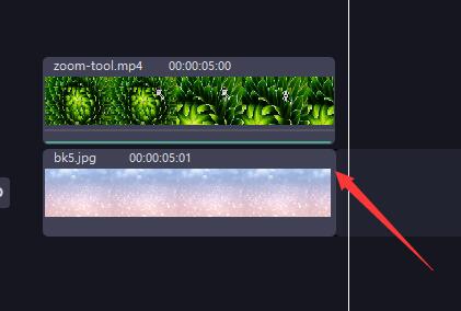 4、如果你的背景没有在整条视频中显示,可以将鼠标移动到对应的时间轴边缘,直到鼠标变成左右箭头键。