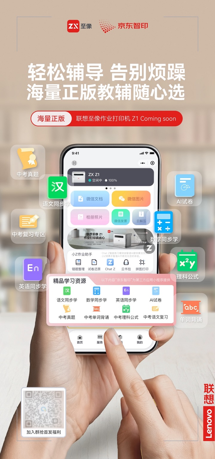 家庭教育需求将成为中国打印机市场增长的主要驱动力。32年专注打印的联想至像,是激光第一阵营唯一中国品牌,也是拥有共创精神的新锐场景品牌。基于对家庭作业辅导的市场洞察,联想至像将AIGC应用于实际场景,推出的Z1是业内首款专注解决“作业”场景问题的打印机。
