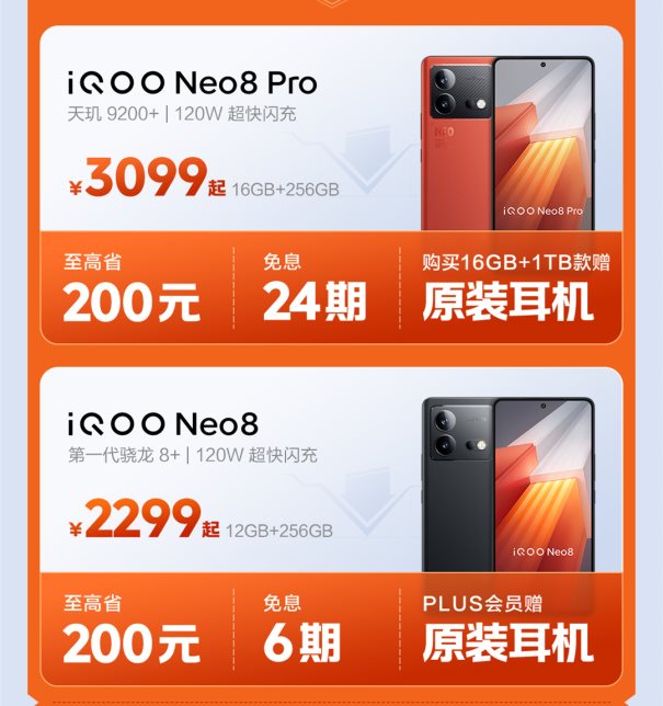 iQOO Neo8系列新品首发立减200,壕礼享不停