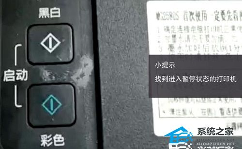 1、首先找到并进入暂停状态的打印机,然后可以看到两个按钮。