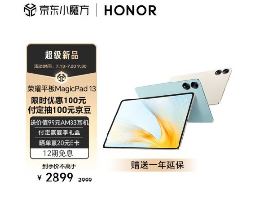 - 荣耀平板MagicPad 13正式开售 荣耀最强大屏旗舰办公平板2899元起