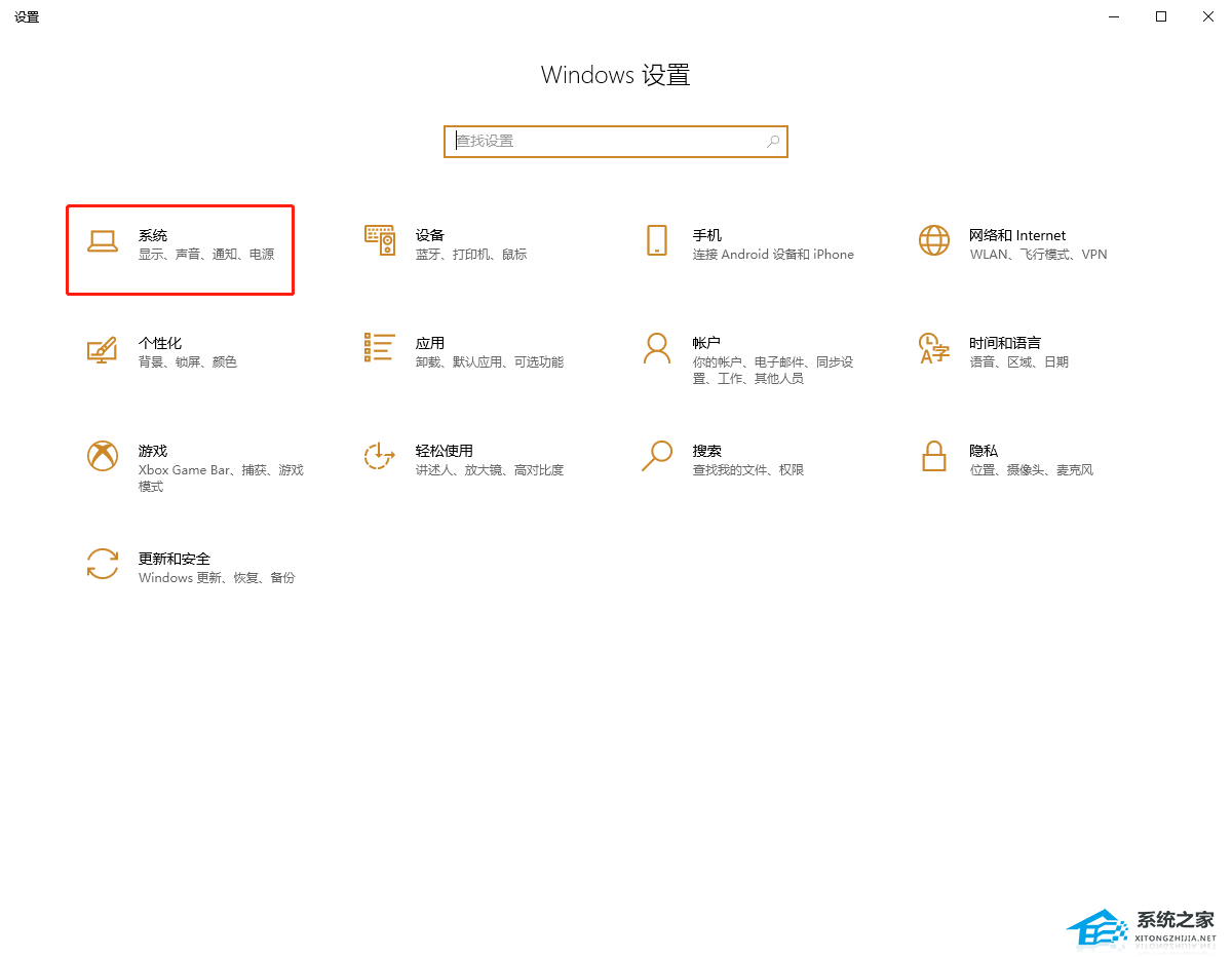 1. Win10系统中进入“系统设置”界面。
