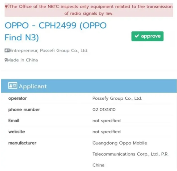 根据网络上的爆料,OPPO Find N3已通过NBTC认证,型号为CPH2499。这款手机将配备一块120Hz高刷新率的显示屏,分辨率为2268×2440p,使用户在使用时能够享受到更加流畅的视觉体验。处理器方面,OPPO Find N3将搭载骁龙8 Gen2处理器,为其提供强大的性能支持。此外,该机内置一块4805mAh大电池,能够满足用户长时间使用的需求。
