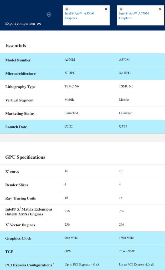 【本站】8月1日消息,近日,英特尔悄然推出锐炫A570M移动GPU,这款新品被认为是A550M的高功耗版本。尽管A550M独显产品此前鲜有问世,但A570M很可能成为A550M的实际上市版。