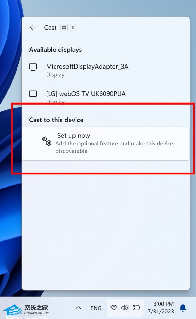 现在,我们将在“快速设置”中的“Cast”弹出窗口中提供 PC 的内联设置,并逐步指导用户启用: