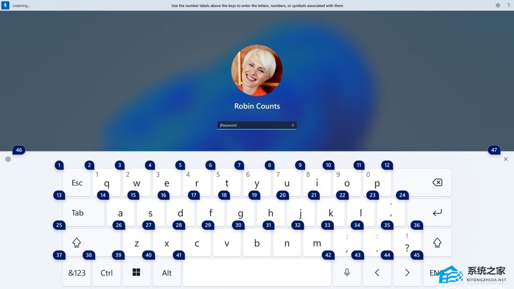 触摸键盘上带有数字标签,可使用语音输入密码。