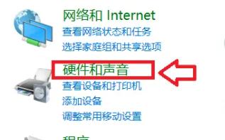 2. 然后点击“硬件和声音”。