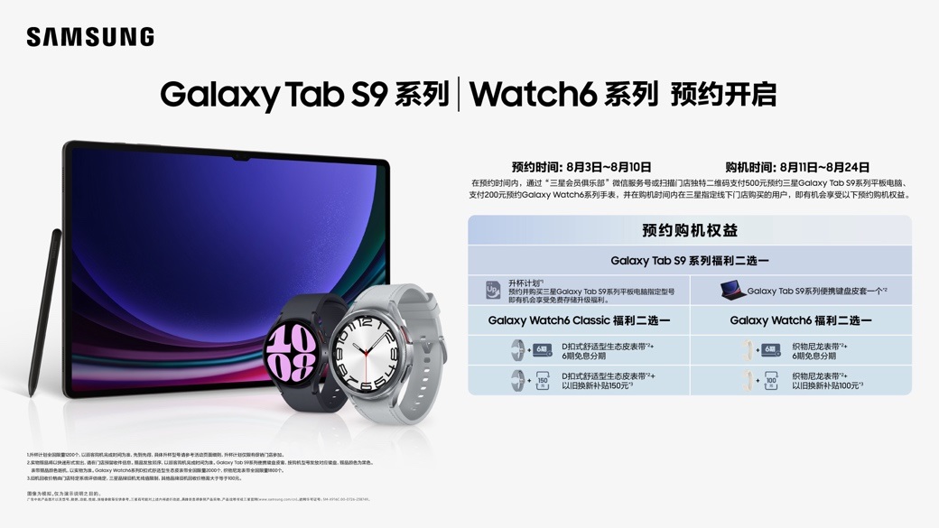 更加个性化的健康体验搭配升级的睡眠跟踪与睡眠指导功能,可以让用户从良好的睡眠开始,为全天的日常活动增添活力。目前,三星Galaxy Watch6系列正在火热预约中,欢迎前往三星商城、三星京东自营官方旗舰店、天猫三星官方旗舰店、三星手机苏宁自营旗舰店等线上渠道以及线下授权三星门店参与预约活动,届时可享惊喜购机福利。