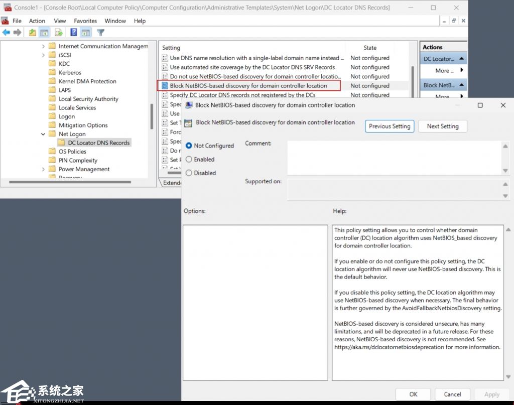 BlockNetBIOSDiscovery 组策略设置的屏幕截图。