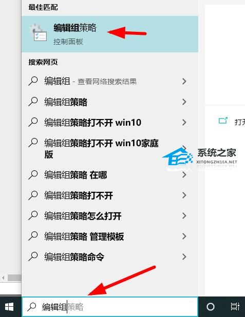 2. 在搜索框中输入“编辑组”即可看到“编辑组策略”。