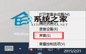 第一步、对着任务栏音量大小图标,单击鼠标右键,菜单中点击选择“声音”。