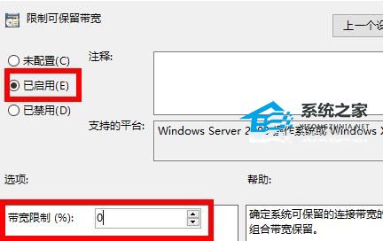 5. 最后选择“已启用”将带宽限制为0即可。