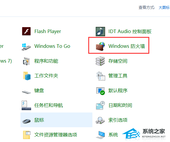 1、在任务栏中的搜索框中输入“控制面板”并打开,点击其中的“Windows防火墙”选项。