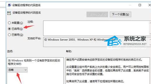 6. 最后勾选“已启用”并将选项改成“忽略”再确定保存即可禁用强制签名。