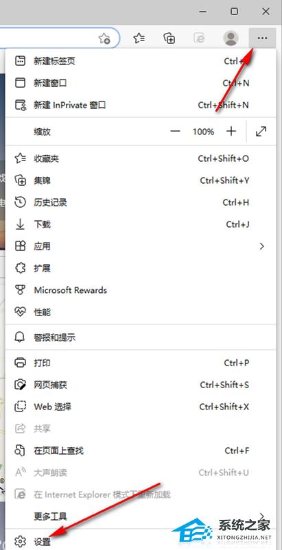 1. 首先我们先将Edge浏览器打开,然后在打开的右上角点击三个点,在打开的下拉选项中选择【设置】。