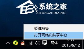 5. 接下来右击任务栏“网络”图标,从其右键菜单中选择“打开网络和共享中心”项进入。