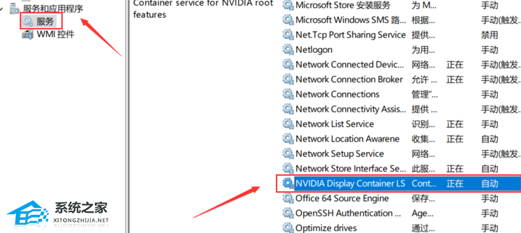 5、接着点击左侧“服务和应用程序”中的“服务”,找到右侧中的“nvidia display”双击打开。
