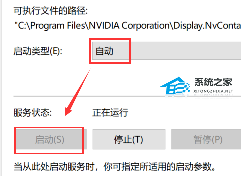 6、最后在打开的窗口中,将“启动类型”改为“自动”,并点击下方“服务状态”中的“启动”按钮。