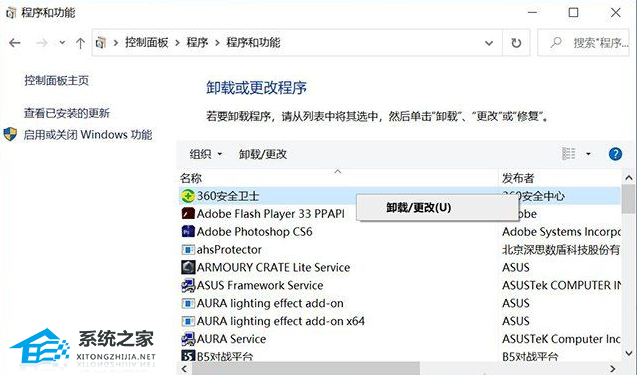 2、我们找到需要卸载的程序,右键选择“卸载/更改”进行卸载该程序。