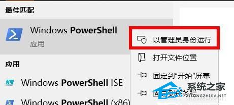 1. 在左下角的任务栏中输入“powershell”,右击选择“以管理员身份运行”。